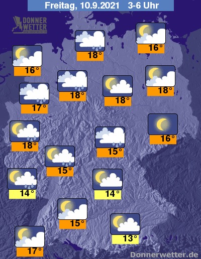 In der Nacht auf Freitag ist der Himmel über dem Osten und Südosten Deutschlands nur locker bewölkt, teils auch sternenklar, und es bleibt meist trocken. In den übrigen Landesteilen überwiegt wechselnde oder starke Bewölkung und es muss weiterhin mit lokalen Schauern gerechnet werden.
