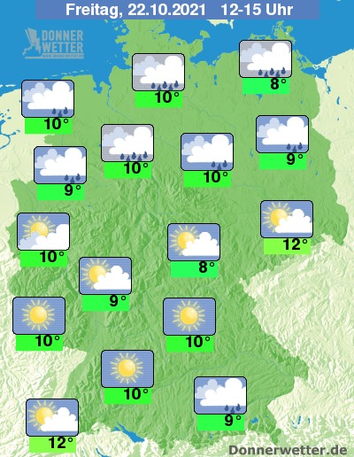Heute Nachmittag scheint vor allem im Süden Deutschlands verbreitet die Sonne, hier bleibt es weitgehend trocken. Im Norden und im weiteren Verlauf über der gesamten Nordhälfte ziehen dichte Wolken hinweg und es bilden sich zeitweise Schauer, jedoch lockert es im Verlauf von Norden auch gebietsweise wieder auf. Die Temperatur liegt bei 8 Grad in Vorpommern und bis 12 Grad im Breisgau. Im Norden und Osten weht noch ein oft starker, an den Küsten ein verbreitet stürmischer Wind.