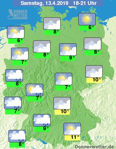 Heute Abend bleibt es meist bei dem stark bewölktem und nur hin und wieder auch locker bewölktem Himmel. Über der Südwesthälfte Deutschlands fällt zudem gebietsweise Regen, teils auch mit Flocken oder Graupel. Im Norden und Osten bleibt es hingegen meist trocken. Die Temperaturspanne liegt bei lediglich 6 bis 11 Grad.