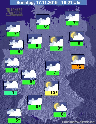 Heute Abend zieht in den westlichen Landesteilen zum Teil kräftiger und langanhaltender Regen auf. Weiter nach Osten hin ist es auch oft stark, teils aber auch aufgelockert bewölkt und dabei weitgehend trocken. Die Temperatur liegt bei nasskalten 4 Grad am Pfälzer Wald und bei bis zu milden 15 Grad in der Lausitz.