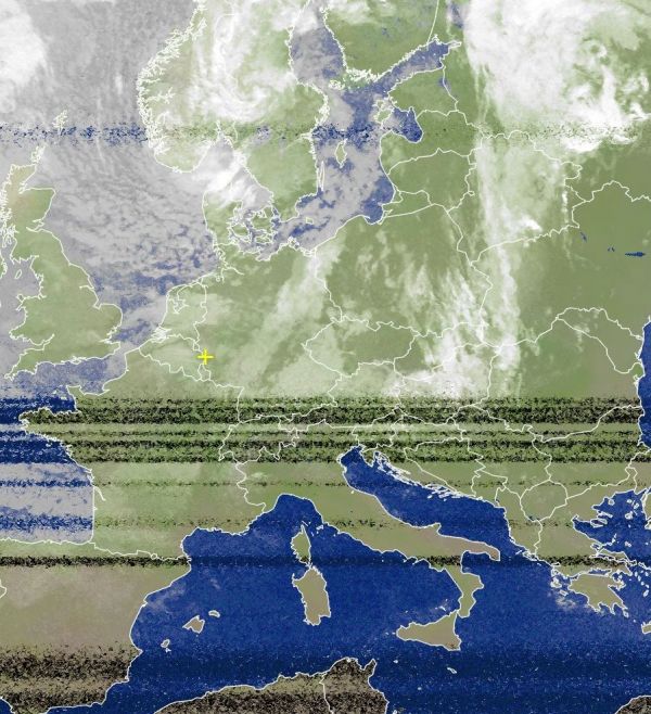 Auf dem Satellitenfoto von heute Morgen erkennen wir einen Tiefdruckwirbel über Skandinavien. Er sorgt mit seinen Ausläufern in weiten Teilen von Nord-, Mittel- und auch Osteuropa für nasskühles und teils sehr windiges Schauerwetter.