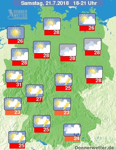 Heute Abend ist es über dem Norden teils wechselnd, teils stark bewölkt, aber trocken, an den Küsten ist es auch oft sonnig. Weiter nach Süden hin kann sich zwar auch hier und da die Sonne zeigen, jedoch ziehen hier immer wieder auch dichte Quellwolken durch und es sind sowohl Schauer als auch örtliche Gewitter möglich. Die Temperatur liegt bei 26 Grad an den deutschen Küsten und bis 31 Grad in der Kölner Bucht.