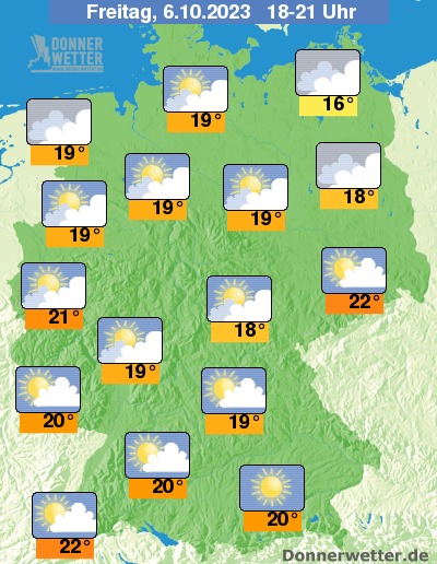 Heute Abend zeigt sich der Norden weiterhin stark oder dicht bewölkt, Regen fällt dazu aber nur selten. Weiter nach Süden hin werden die Auflockerungen immer häufiger und vor allem im Süden ist es auch oft sonnig, dazu bleibt es trocken. Die Temperatur liegt bei 16 Grad in Neubrandenburg und 22 Grad in Freiburg.