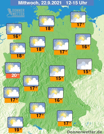 Heute Abend lockert und heitert der Himmel auch über den östlichen Landesteilen immer weiter auf. Im übrigen Bundesgebiet ist es weiterhin verbreitet heiter bis sonnig und nur hin und wieder ziehen auch mal mehr Wolken durch, dabei bleibt es trocken. Die Temperatur liegt bei 16 Grad in Chemnitz und bis zu 22 Grad in Köln.
