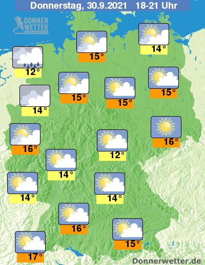 Heute Abend ziehen die dichten Wolken und nachfolgend auch der Regen vom Nordwesten, auch bis in den Norden und Westen Deutschlands. Im übrigen Bundesgebiet ist es noch oft heiter, jedoch nimmt die Bewölkung nach und nach auch hier etwas zu, dabei bleibt es aber trocken. Die Temperatur liegt bei 12 Grad in Bremerhaven und 17 Grad in Freiburg.