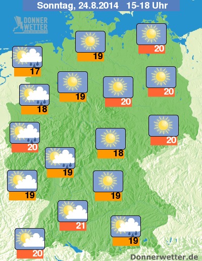 Heute Nachmittag ziehen vor allem im äußeren Westen, aber auch im Nordwesten und gebietsweise im Süden teils dichte Quellwolken auf, dabei können sich einzelne Schauer entwickeln. Sonst ist es aber vielfach freundlich bei viel Sonnenschein und es bleibt trocken. Die Temperatur liegt bei recht kühlen 17 Grad in Ostfriesland und bei spätsommerlichen 21 Grad in Baden-Baden.