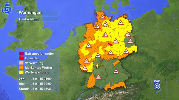 Nach der aktuellen Warnkarte des Deutschen Wetterdienst gilt bis Freitag früh 10 Uhr vielerorts noch die Warnstufe "Markantes Wetter", das bedeutet das hier mit möglichen Sturmböen zu rechnen ist.