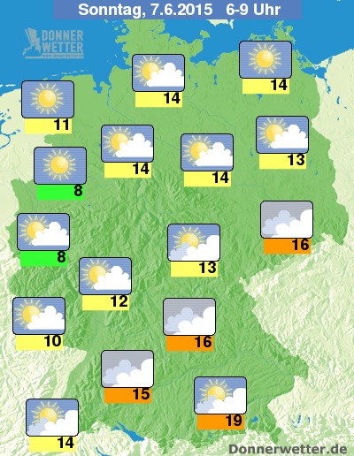 Vielerorts freundlich startet dann der Sonntag, nur der Süden verharrt unter einer meist dichten Wolkendecke.