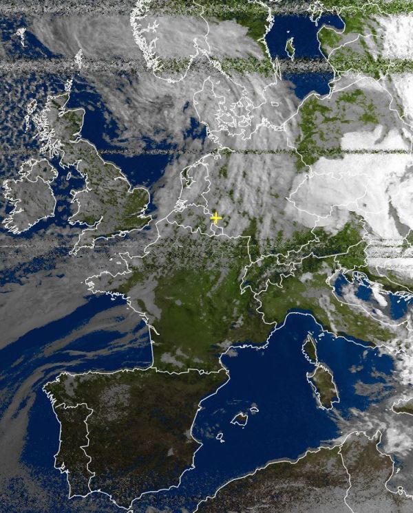 Auf dem Satellitenfoto von heute Morgen ist der Wolkenwirbel eines Tiefs über der Nordsee zu erkennen. Die verbreitet kompakten Wolken brachten hierbei besonders im südlichen Norwegen, aber auch über Dänemark und dem Norden Deutschlands häufig Schauer.
