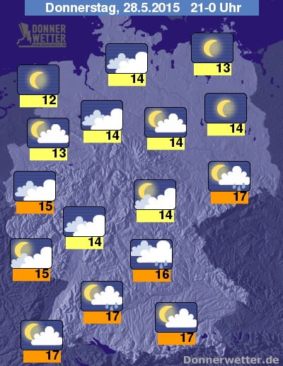 Heute Abend bilden sich in einem Streifen vom Schwarzwald bis nach Sachsen hinein gebietsweise Schauer, vereinzelt auch kurze Gewitter. Im übrigen Land ist es zumeist aufgelockert, vor allem im Westen und teils auch im Norden stark bewölkt, dazu jedoch trocken. Im Nordwesten und Nordosten zeigt sich ein verbreitet sternenklarer Abendhimmel. Die Abendtemperaturen liegen bei 17 Grad in Freiburg und 12 Grad im nördlichen Emsland.