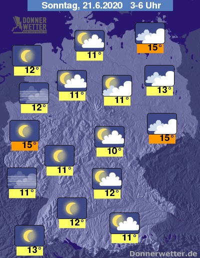 In der Nacht zum Sonntag klart der Himmel über der Westhälfte der Republik verbreitet auf. Weiter nach Osten hin sind die Wolken zunehmend mehr und in den östlichen Landesteilen auch meist dicht. Direkt an der polnischen Grenze kann hier und da noch Regen fallen, sonst bleibt es aber trocken. Die Temperatur sinkt auf 15 Grad an der Ostsee und bis 10 Grad im Eichsfeld.