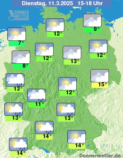 Temperaturen am Nachmittag um 7 bis 15 Grad.