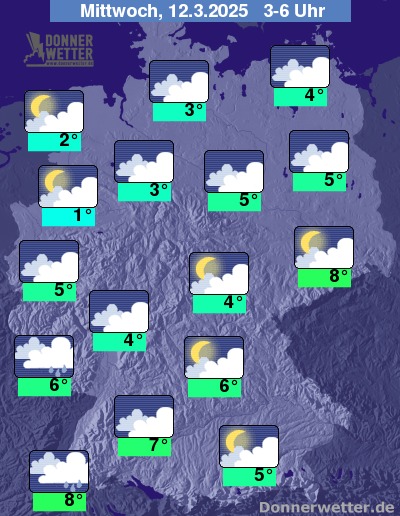Die Temperaturen gehen in den frühen Morgenstunden zurück auf Werte um 8 bis 1 Grad.