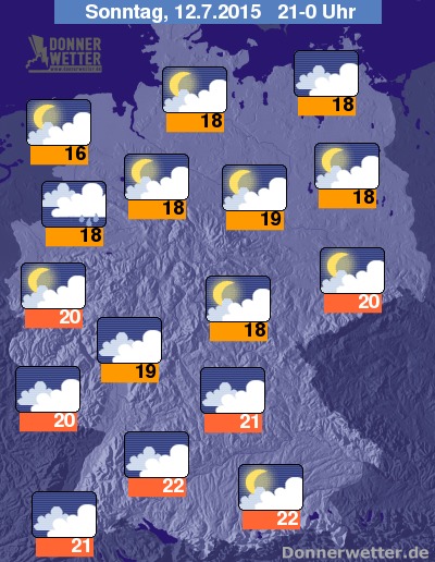 Heute Abend zieht verbreitet aufgelockerter, oft aber auch starke Bewölkung durch, dabei ist hier und da auch etwas Regen möglich, zumeist bleibt es aber trocken. Die Abendtemperatur liegt bei 22 Grad in Karlsruhe und 16 Grad in Ostfriesland.