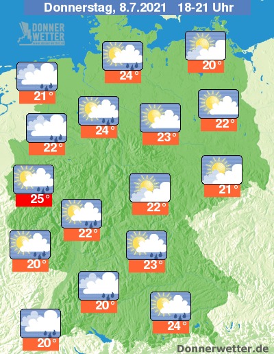 Heute Abend ist es weiterhin teils stark, teils aufgelockert bewölkt, dabei bilden sich gebietsweise Schauer, Gewitter bilden sich nur noch selten. Die Temperatur liegt bei 20 Grad in Rostock und bis 25 Grad in Köln.