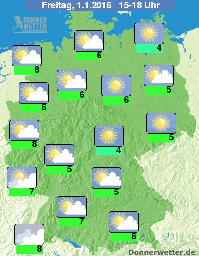 Heute Nachmittag ist es vor allem über der Osthälfte Deutschland oft heiter bis sonnig, gebietsweise halten sich hier jedoch auch Nebel oder Hochnebel. Weiter nach Westen hin ziehen meist einige, zum Teil auch mal dichte Wolken durch. Es bleibt landesweit trocken bei Temperaturen von 4 Grad im Grabfeld und etwa 8 Grad im Breisgau.