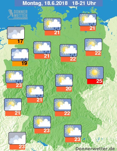 Heute Abend sind über der Nordwesthälfte Deutschlands noch vereinzelte Schauer möglich, im Süden und Osten ist es häufig schon heiter bis sonnig und trocken. Die Temperatur liegt bei 17 Grad in Bremerhaven und bis 25 Grad in Dresden.