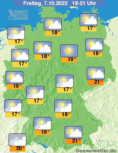 Heute Abend nimmt der Wolkenanteil insgesamt etwas zu, allerdings ist es auch weiterhin oft heiter bis sonnig, vor allem über der Südhälfte ist es aber gebietsweise auch aufgelockert bis stark bewölkt. Es bleibt trocken bei 17 Grad in Rostock und 21 Grad in München.