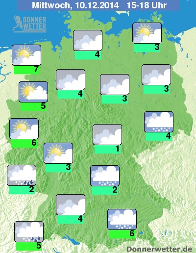 Am Abend lockert auch im Norden und Nordosten die Bewölkung meist auf und es bleibt auch hier weitgehend trocken, dagegen halten sich südlich des Mains noch weitgehend dichte Wolken aus denen es immer wieder mal regnet oder schneit. An der Nordsee bringen dichte Wolken einzelne Schauer, sonst bleibt es weitgehend trocken. Im Norden weht weiterhin ein frischer bis starker, an der Küste ein starker bis stürmischer und in Böen auch orkanartiger Wind. Die Abendtemperatur liegt bei 6 Grad an der Nordsee und bei 0 Grad am Fichtelgebirge.