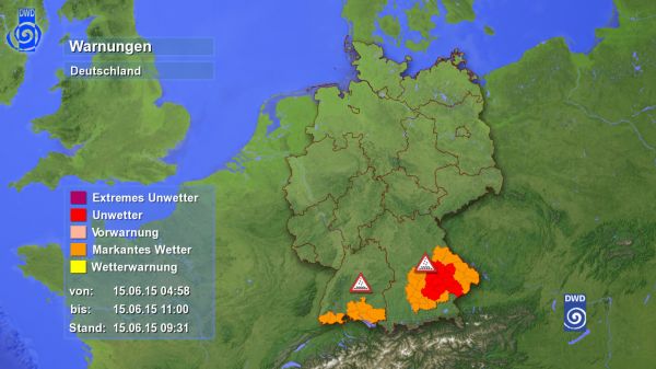Aktuell haben wir noch Gewitter im östlichen Bayern (Donau/München). DIe Wetterlage bruhigt sich aber zum Dienstag und Mittwoch.