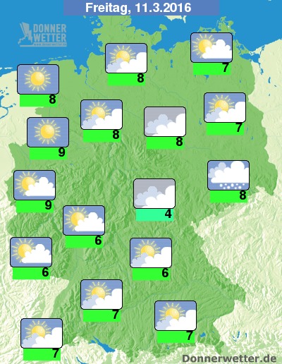 Am Samstag kann sich wohl in weiten Landesteilen die Sonne zwischen meist nur lockeren Wolkenfeldern zeigen, hier und da wird es auch sehr sonnig. Vor allem im Küstenumfeld können die Wolken allerdings auch dicht sein, dazu bleibt es bundesweit trocken. Die Temperaturen steigen immerhin auf 6 bis 11 Grad.