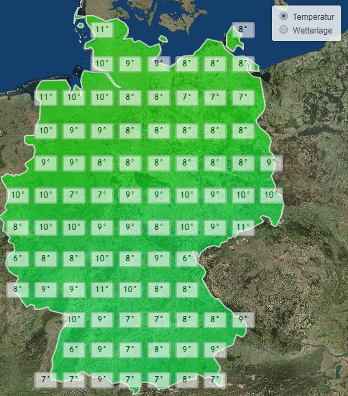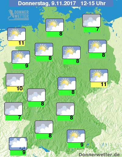 Die Temperaturen präsentieren sich dabei gegenüber den Tagen zuvor weitgehend unverändert. Im Schwarzwald und der Eifel ist am Nachmittag bereits bei 6 Grad Schluss, an der Nordseeküste sind bis zu 11 Grad möglich.