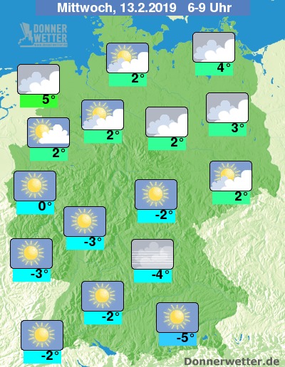 Die Temperaturunterschiede bleiben groß: Um -5 bis +5 Grad C in den Frühstunden.