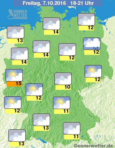 Heute Abend zeigt sich Deutschland überwiegend stark bewölkt, die besten Chancen auf zumindest zeitweise etwas Sonnenschein bestehen im Westen und Südwesten der Republik, sowie in Sachsen. Regen ist jedoch kaum ein Thema. In Berlin-Brandenburg fällt jedoch gebietsweise auch Niederschlag. Die Temperatur liegt bei 10 bis 15 Grad.