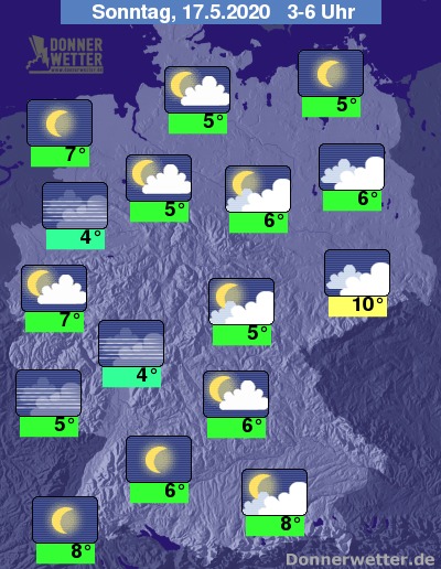 In der Nacht zeigt sich der Himmel, ausgenommen den Süden, zunächst noch häufig stark bewölkt oder bedeckt, an der Spree können zudem einzelne Schauer fallen. In den frühen Morgenstunden lockern die Wolken in der Nordhälfte dann zunehmend auf, im Verlauf kann sich regional Nebel bilden. Kompaktere Wolken halten sich dann meist nur noch östlich der Elbe.