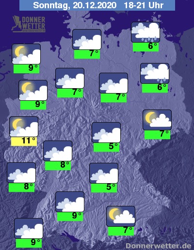 Heute Nachmittag ist es im Osten und Südosten zum Teil heiter, sonst ziehen aber überwiegend dichte Wolken durch, dabei fällt in einem Band von Südwest- bis Nordostdeutschland gebietsweise Regen, sonst bleibt es hingegen weitgehend trocken. Die Temperatur steigt auf 4 Grad am Thüringer Wald und bis 11 Grad im Rheinland.