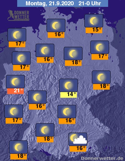 Die Temperaturen sinken am späten Abend auf Werte um 21 Grad in der Kölner Bucht und um 14 Grad in Franken.