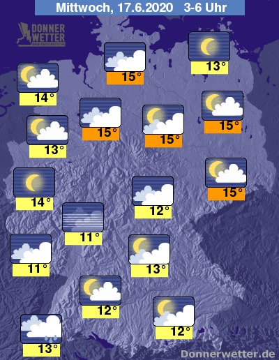 Tiefstwerte um 15 bis 11 Grad.