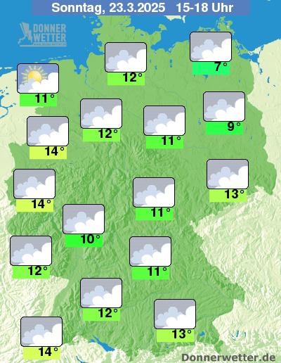 Am Sonntagnachmittag zeigt sich der Himmel über weiten Landesteilen wechselnd oder stark bewölkt; im Süden und Westen muss zeitweise mit einzelnen Schauern gerechnet werden, sonst bleibt es weitgehend trocken.