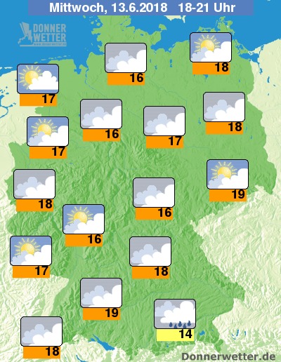 In der Nacht zum Donnerstag klart der Himmel über weiten Landesteilen auf, oft noch leicht bewölkt ist es entlang des Rheins, der Ems, sowie am Alpenrand und am Erzgebirge, dazu bleibt es trocken. Die Temperatur sinkt auf 12 Grad in Dresden und bis 7 Grad im Grabfeld.