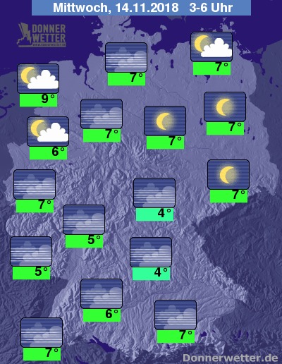 Die Luft kühlt sich in den Frühstunden auf 4 bis 7 Grad ab. Etwas milder bleibt es im Nordseeumfeld und auf den Inseln wegen des leichten bis mäßigen Windes.