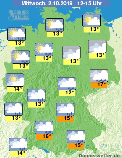 Am frühen Nachmittag fällt südöstlich einer Linie vom Saarland, über Südhessen, Thüringen bis nach Sachsen aus kompakten Schichtwolken noch längere Zeit Regen, regional auch kräftig. Die Schneefallgrenze sinkt in den Alpen bis zum Abend unter 2000 m. Im übrigen Bereich gibt es eine Mischung aus kurzen Aufheiterungen und mächtigen Schauerwolken. Örtlich blitzt und donnert es dabei auch und es können sich Graupelkörner unter die Tropfen mischen.