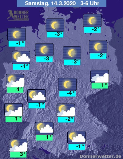 Bis zu den Frühstunden kühlt die Luft auf -4 bis 0 Grad ab. Lediglich im Südwesten, sowie unter den dichteren Wolken in Sachsen bleibt es meistens frostfrei.