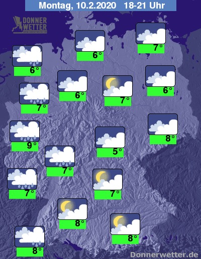Am Abend bleibt die Wolkendecke über den meisten Landesteilen geschlossen, zeitweise Auflockerungen sind in den nächsten Stunden zunächst vor allem südlich des Mains, am späteren Abend dann entlang der Oder zu erwarten.