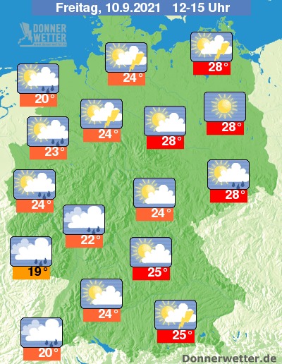 Lokal erhöhtes Gewitterrisiko am Nachmittag, Höchstwerte um 19 bis 29 Grad.
