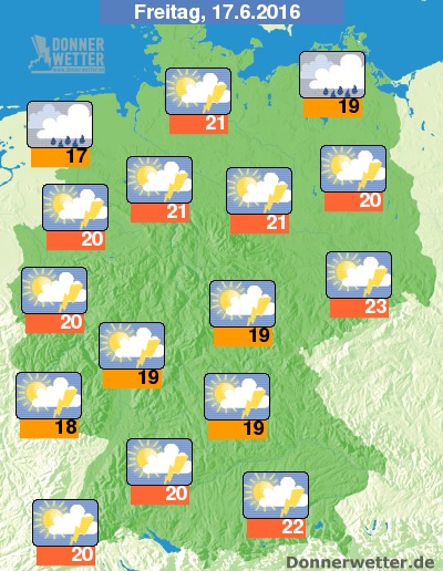 Immerhin spielen die Temperaturen meist mit: Höchstwerte um 19 Grad C in Ostfriesland und um 24 Grad C in Dresden.
