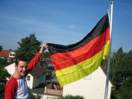 Schwarz-rot-gold an jedem Auto. An jedem Balkon, an jedem Fahnenmast, an jeder Buntstift-Packung. Und sogar die Salatköpfe bei ALDI sehen inzwischen aus wie Fußbälle!! Dem Fußball-Fieber konnte sich auch das Donnerwetter.de-Team nicht widersetzen, inzwischen weht auch über der Donnerwetter.de- Zentrale in Bonn die Fahne. Den ersten 'Fahnenappell' zelebrierte unser größter Fußball-Fan Tim Mair...