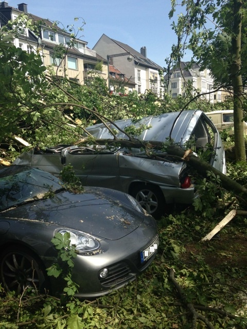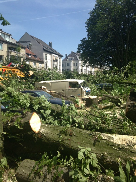 An der Cecilienallee am Düsseldorfer Rheinufer knickten wurden dickste Baumstämme wie Streichhölzer geknickt - Bild: Christian Deussen