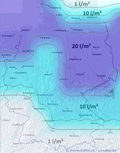 Dadurch werden auch alle Gärtner unter uns entlastet. Die extrem hohe Verdunstung, insbesondere am Sonntag, hatte vielerorts eine schnelle Abtrocknung der oberen Bodenschichten zur Folge. Viele Pflanzen ohne tiefe Wurzeln waren deswegen vorübergehend von der Wasserversorgung abgeschnitten und waren auf künstliche Bewässerung angewiesen. Diese können wir uns in den kommenden Tagen nun voraussichtlich sparen, denn Mutter Natur übernimmt diesen Job für uns!