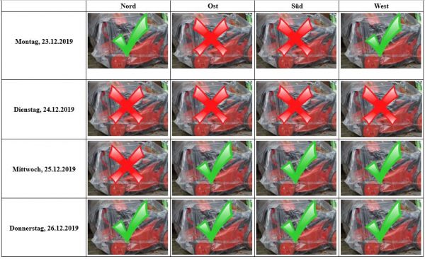 Das Wetter läd die Tage nicht unbedingt zum Arbeiten im Außenbereich ein, jedoch ist es am Montag schon größtenteils trocken und nur im Süden bleibt es meist durchweg nass. An Heiligabend herrscht dann landesweit doch durchwachsenes und zeitweise nasses Wetter. Am Mittwoch sind die Bedingungen mit Ausnahme des Nordens schon wieder trocken und am Donenrstag ist es überall trocken, jedoch hat es die Sonne trotz Hochdruckeinflusses schwer sich gegen die Sonne durchzusetzen.