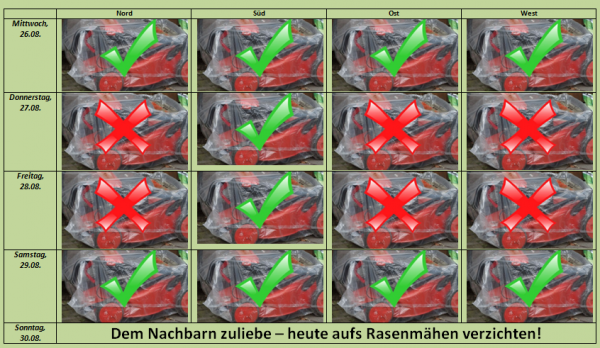 Während z. B. am Mittwoch bei viel Sonnenschein, die Temperaturen im Norden und Westen Werte um 25 bis 29 Grad C erreichen, kann man in den selben Landesteilen am Donnerstag bei meist 0 Sonnenstunden froh sein, wenn die Temperaturen die 20-Grad-Marke erreichen.