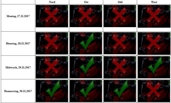 Für die Arbeit unter freiem Himmel bietet sich diese Woche insgesamt weniger an. Besonders am Montag und Dienstag sollten dazu wasserdichte Kleidung bei ungemütlich nasskaltem Wetter eingeplant werden. Am Mittwoch ist es zumindest im Westen und Osten weitgehend trocken und die Sonne hat auch mal eine Chance. Am Donnerstag sieht es nur für den Süden bei häufigem Schneefall ungünstig aus, sonst ist es teils trüb, aber weitgehend trocken.