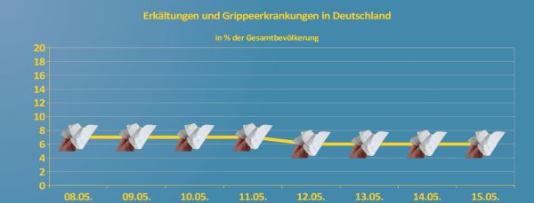 Die Bevölkerungsanteil der Menschen, die in dieser Woche von einer Erkältungskrankheit betroffen ist, beläuft sich auf sechs bis sieben Prozent.