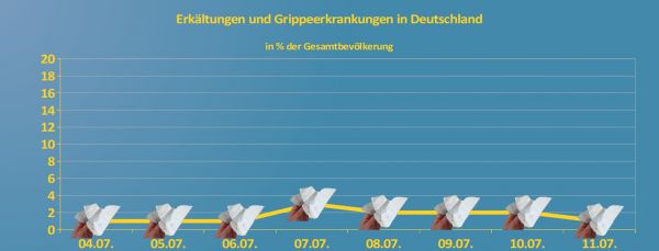 Aufgrund des sommerlichen Wetters sind die Grippezahlen aktuell gering. Zumeist bewegen sich die Werte bei unter 2 %.