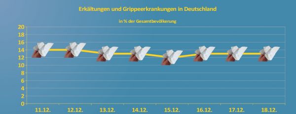 Ein wahrer Grund zur Freude besteht allerdings nicht, denn noch immer sind hierzulande 12 bis 14 % der Bürger von einer Erkältungskrankheit betroffen.