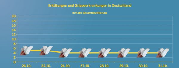Die Erkältungswerte liegen bis Ende der Woche nur bei für diese Jahreszeit mauen vier bis fünf Prozent.